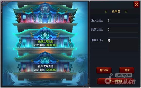 挑战极限,超越自我,获取丰厚的奖励。玩家可以通过挑战极限塔获取到将星之翼系统所能使用的水晶和翅膀。当然极限塔难度不小,玩家需要有过硬的技术和彪悍的战力才有可能挑战成功。
