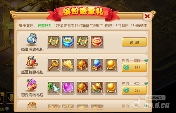 进入八月,不少玩家的暑假也开始逐渐进入尾声,而梦幻西游手游暑期活动也迎来了新的高潮。从8月8日12:00~8月18日24:00,梦幻西游手游为感恩回馈玩家,特为每一位40及以上的少侠准备了免费的豪华盛夏感恩礼包,只要登陆游戏,大碗红罗羹、绿萝羹、藏宝图等,都在等君收入囊中。同时,盛夏修炼礼包、盛夏特惠礼包等超级优惠的限时折扣礼包,也都任君选购。缤纷夏日,五重好礼相赠,相信一定不会让少侠失望。