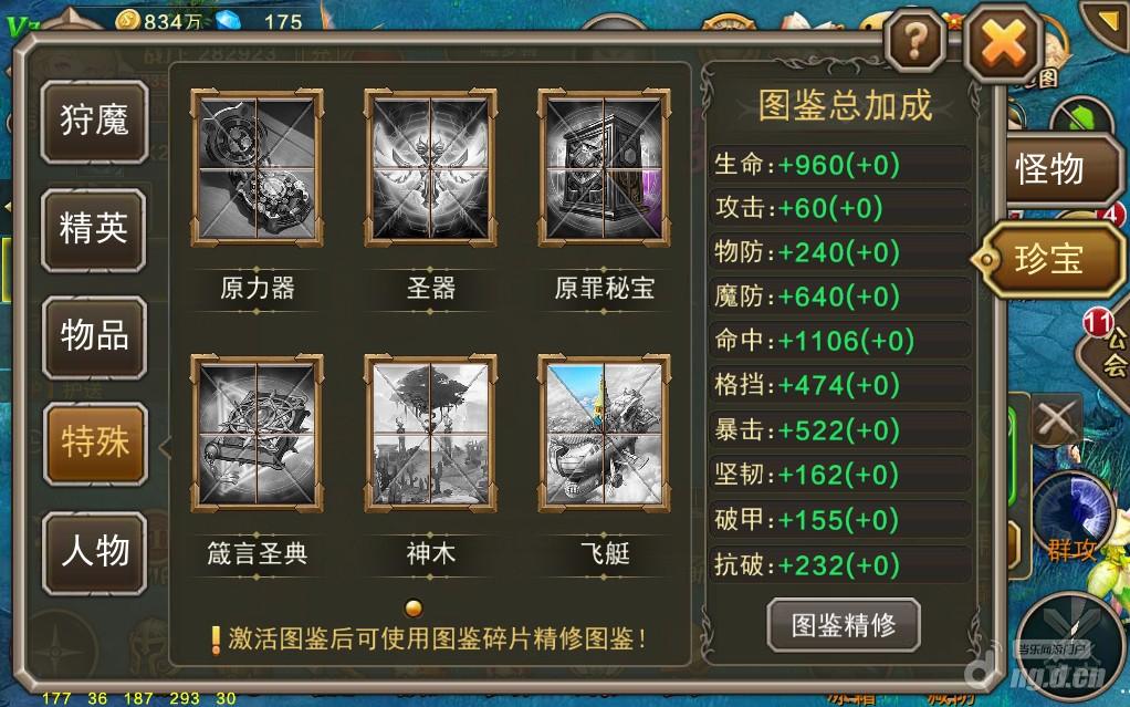 神装和橙装属于高级需求,材料都是橙色的珍稀级别物品,只有狩魔之战和精英BOSS活动会产出,想要获得更多则需要通过淘宝、原罪秘宝和夺宝开宝箱获得,虽然每次激活都会获得大量的战力,但是前期提升空间不大,所以在这里只作简单介绍。二、宠物