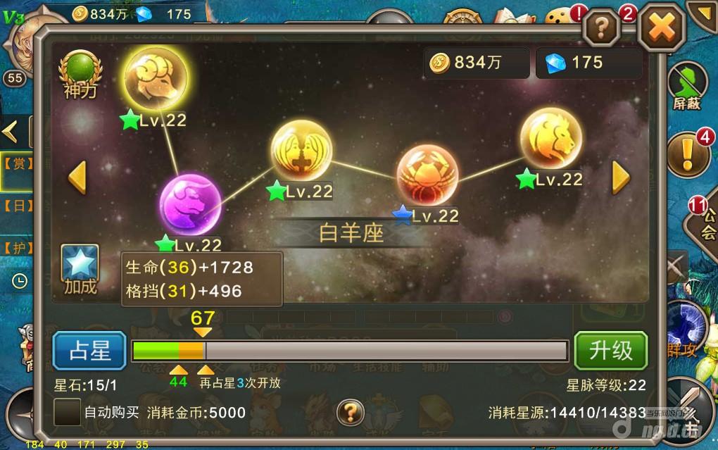 星魂系统需要搭配探险玩法使用,探险会产出星源,是星魂升级的主要材料。通过玩家的等级逐渐开放新的星脉,激活星脉后通过升级提高星脉上限,通过占星洗出更好的属性。