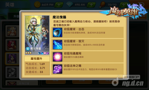 年度手游大作《魔域英雄》强势来袭!!今天小编来和大家介绍一下《魔域英雄》中的三星英雄——魔法傀儡