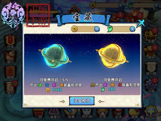 3、每日花费修行值进行夺宝也是必不可少的了,夺宝可以获得器灵、精铁、璀星石、经验石这些物品,这些物品在游戏当中作用是非常大的。