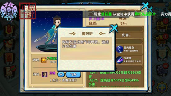 妖魂破技能:在一定时间内击杀任意敌方单位,一定时间内可提高角色伤害值。