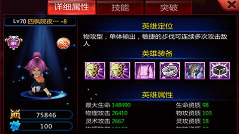 她的技能概括特点:对敌方血量最高的英雄造成最高伤害,并且有几率附加眩晕状态。攻击命中时有几率追加1次额外攻击。卍解状态对敌方一列英雄产生致命打击。并有几率附加眩晕状态!