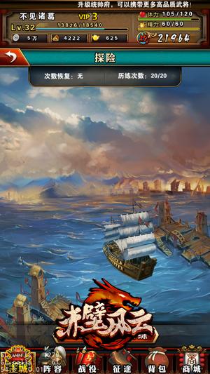 《赤壁风云》还有历练玩法,可以获得主将经验、银币以及大量道具。历练次数通过时间累积即可恢复,是玩家升级必不可少的重要活动。