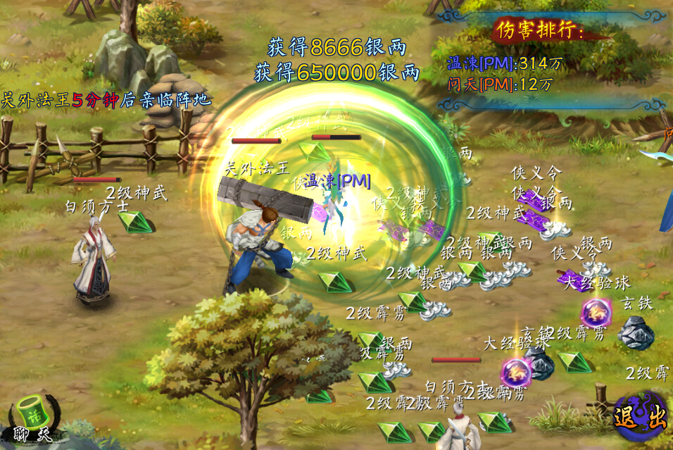 法王身负大量武林至宝,掉落大量心法秘籍,各类魂石,宝石和精火石等;完成最后击杀的侠士可以即刻拾取奖励,其他参与击杀的侠士可在2秒后拾取。