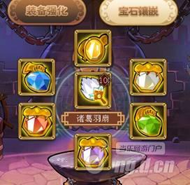 宝石镶嵌在武将的装备孔上,对武将的属性有加成,每件装备最多有6个孔可以镶嵌,并且不能镶嵌同一类宝石。