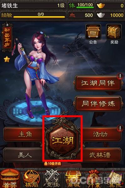 1、首先江湖功能还是由首页点击【江湖】按钮进入。