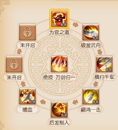 大部分主动技能使用需要消耗魔法,少部分消耗气血。使用门派绝技统一消耗120愤怒。