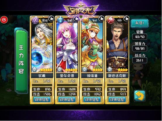 新手给予的小红帽无论在攻击与防御上都有着不俗的表现,并且大招可以打断敌方BOSS的技能;疯帽子的续航能力在小队中尤为重要,短暂的全体治疗配合大招的中量治疗可以很好的保证前排血量稳定;火柴女孩是三星英雄中群体技能的佼佼者,不仅可以在重要时刻清理小怪,更能加速副本的推进速度;吕布的强大不用赘述,各位勇者们心里肯定都有数;堂吉诃德可以与吕布互换,堂吉诃德大招可以群嘲并且提高护甲,能为小红帽减轻压力。主要角色:伏羲(法师)、圣女贞德(其实)、彼得潘(远程)、斯巴达克斯(战士)