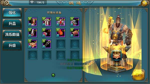 点击【锻造】—【强化】,进入到装备强化界面,选择需要进行强化的装备,消耗对应的强化材料以及银子就可以对该装备进行强化。