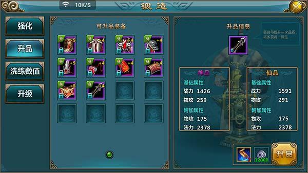 点击【锻造】—【升品】,进入到装备升品界面,选择需要进行升品的装备,消耗对应的升品材料以及银子就可以对该装备进行升品。