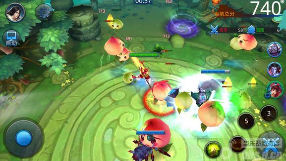 蟠桃园则是进行体力补充的地方,虽然不像其他游戏一样是无聊的一键吃鸡吃饺子吃饭喝酒补充体力,而换成了击杀桃子换取体力。但是不得不说蟠桃园的这个副本对强迫症来说简直是大杀器!看图!满地图跳的都是各种各样的桃子!可是你只有区区几个英雄(11级才3个)完全挡不住这些逃跑的桃子,打了这边的那边的跑了!你永远也没办法弄死所有的桃子!只能眼睁睁的看着他们跑!掉!是不是很着急!是不是很想摔手机!