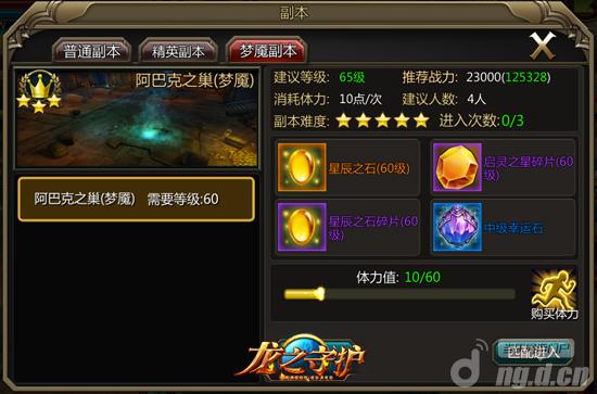 全新梦魇副本在游戏中属于橙装材料的产地,全名为阿巴克之巢。玩家每天可以进入3次,第一次免费,之后两次将需要梦魇荣耀印记方可进入,道具将可以在日常抽奖中有几率获得。副本整体设计十分有趣,共分为六个阶段,玩家将以闯关的形式面对多样化的挑战,有会自爆的行尸、也有让人防不胜防的机关,还有攻高血厚的精英,诡异多变的强力BOSS。总之,本次全新副本加入众多趣味元素,不再是无脑推副本,而是需要玩家之间相互协作,只要方法得当,执行到位,屌丝玩家也能顺利通关斩获极品橙装材料。