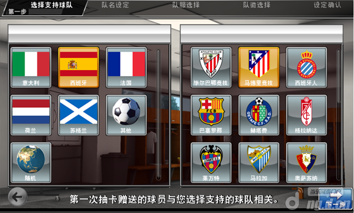 俱乐部的选择会直接决定后面首次免费踢到的四星球员的人选,这个潜在的球员当前效力于你所选择的俱乐部。比如选择AC米兰,你就可以选到卡卡、本田圭佑;马德里竞技,就有科斯塔等。所以一定要根据你想得到的这个首抽四星球员人选来确定你最初的俱乐部选择。