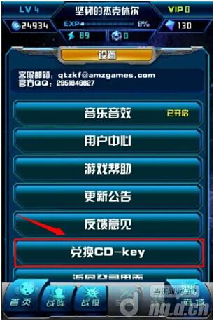 第二步、在“设置”界面中选择“兑换CDkey”,弹出“兑换CDkey”界面。