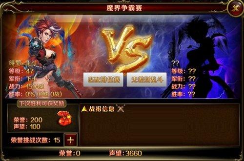 挑战对方进入自动战斗模式,无论胜负均会奖励金币和声望。