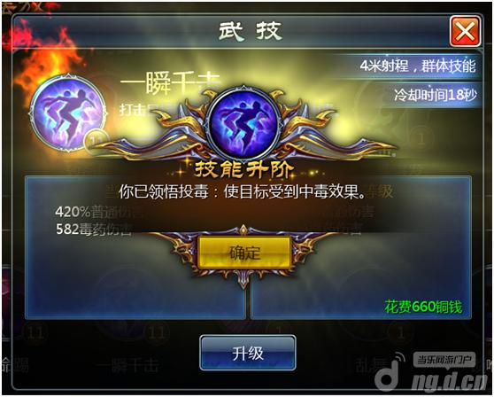 可以在武技界面中提升武技的等级,武技每提升10级就会拥有不同的效果。