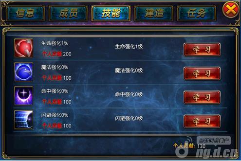 2.玩家通过消耗个人贡献,可学习各类军团技能。