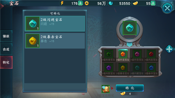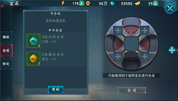 3.宝石合成可以将同种的多个同级宝石合成为更高级宝石;