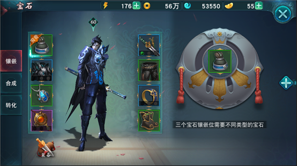 2.宝石镶嵌界面可以让您对有孔的装备进行宝石镶嵌;