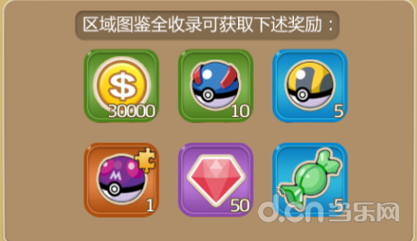 将该区域图鉴全部收集完毕,可以获得如下奖励哦!