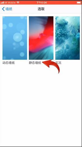 接着选择你要设置的墙纸风格,这里可以选择【动态墙纸】、【静态墙纸】、【实况】三种风格,