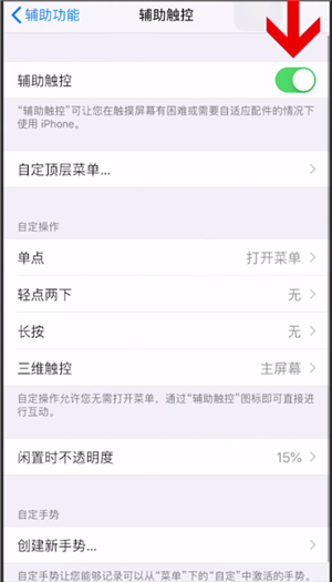 然后选择辅助功能,往下滑找到并点击辅助触控,进入后,将辅助触控选项打开即可。