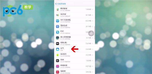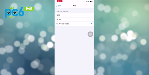 选中天气,点击WLAN与蜂窝移动网,打开天气,即可看到天气已经显示成功了。