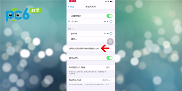 在无线局域网中选择使用无线局域网与蜂窝网络的app,