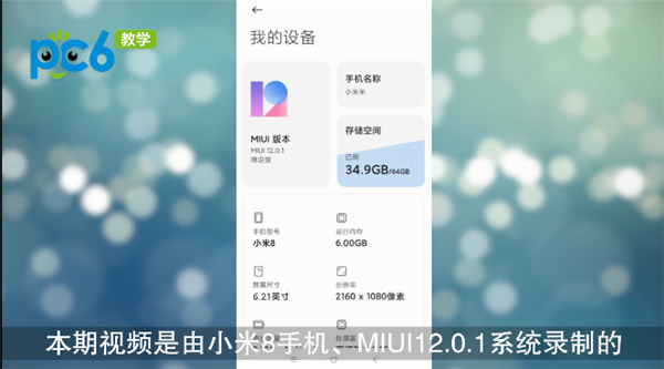本期教程是由小米8手机、MIUI12.0.1系统。