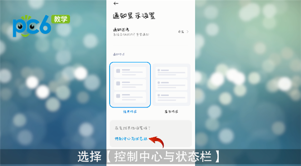 步骤一:打开手机【设置】,步骤二:选择【通知管理】,选择【通知显示设置】,选择【控制中心与状态栏】,
