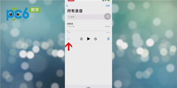 打开语音备忘录,选中要发布的录音,点击三个点,