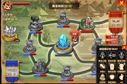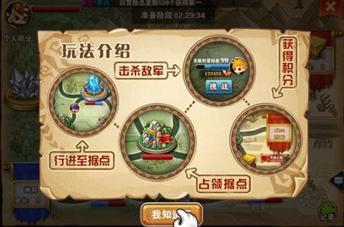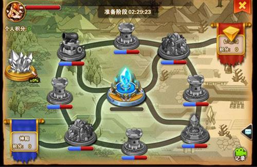 中央战场:根据本据点内双方留存人数和战力的比例,每隔一段时间,为双方公会增加大量积分;