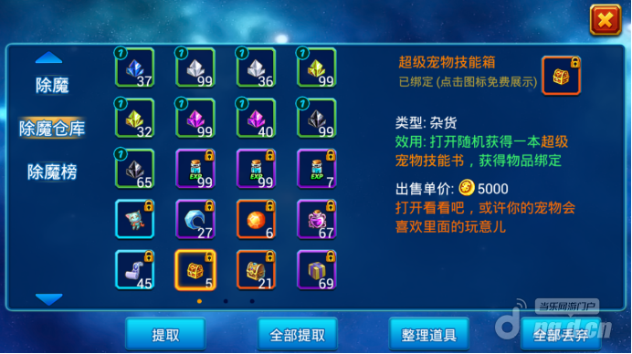 除魔物品存放在"除魔仓库"中,玩家可点击"除魔仓库"进入界面自行领取。