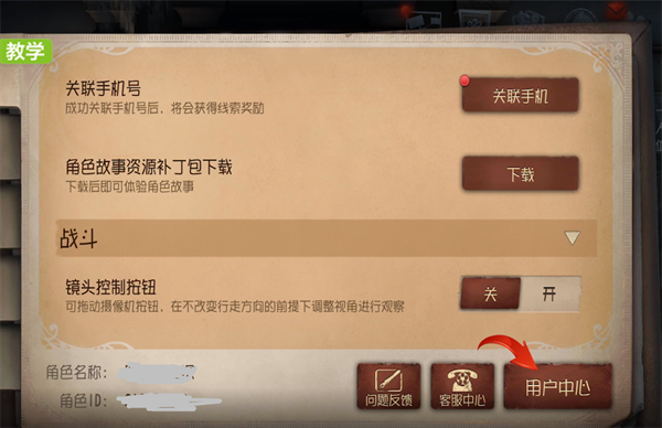 1.在游戏的主场景中点击游戏右上方的齿轮轴,随后在设置页面点击右下方的用户中心即可进入用户的详细页面,在用户页面中可以查看用户的详细设置。