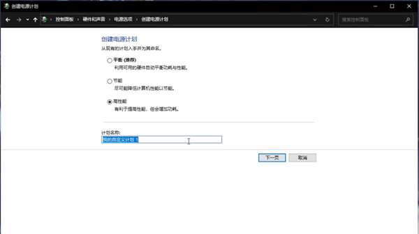 2.在电源设置页面中选择创建电池计划,在创建计划中点击高性能,随后设置一些电池的基本参数,创建成功后就可以为电池设置高性能模式。