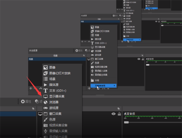 1.OBS录制可以自由选择窗口页面,比如只截取某一个应用或直接录制全屏的画面,以全屏录制为例展示方法。在软件主页面中点击来源栏目下方的+号选项,随后选择显示器采集并点击确认即可添加显示器源。