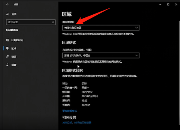 2.在系统设置中点击设置语言时间,随后点击语言并选择语言区域即可进入区域更改页面,将地区改为香港后,微软商店内的软件游戏结算都使用港币了。