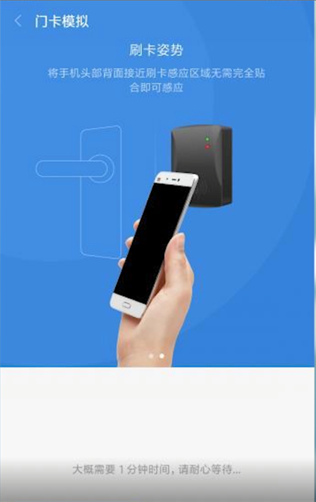 2.在设置页面中依照手机提示来放置门卡位置,选择验证身份和认证选项之后,只要提交了个人的身份证明和绑定账号的密码即可在手机中绑定门禁卡,在等待门卡完成设置后便可自由使用绑定的门禁卡。