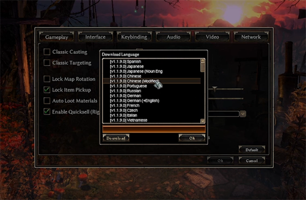 2.随后在设置页面中选择gameplay栏,再在设置栏中点击language选项,随后选择more language查看更多的选择语言,在语言中选择Chinese最后点击download,下载完成后便可在语言栏中选择中文语言。