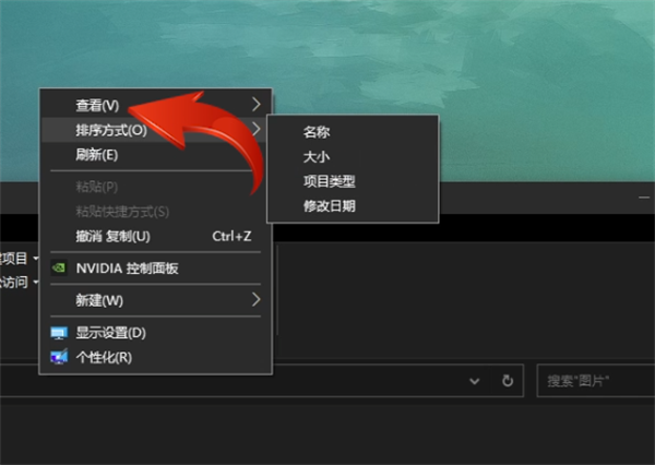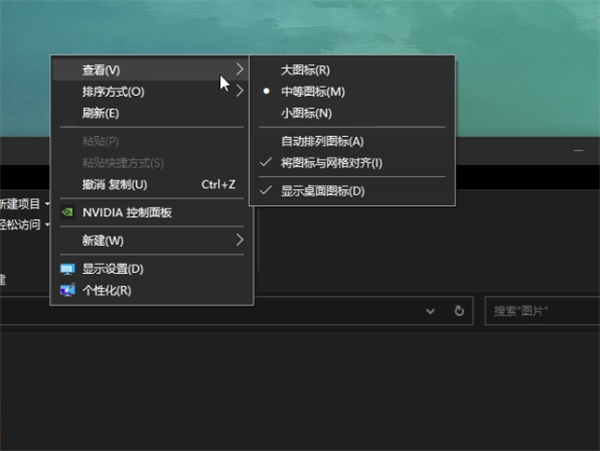 2.在查看选项中可以选择大图标或者小图标的查看方式,选择即可变更图标大小。