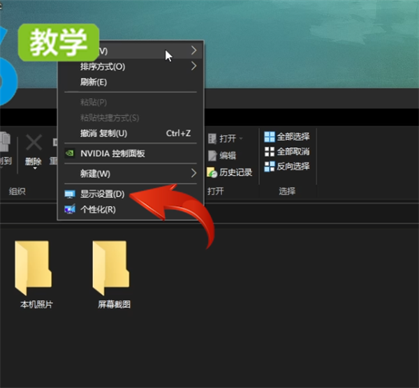 变更分辨率1.变更电脑的分辨率也可以直接让电脑中的图标显示更小,在桌面上点击鼠标右键,随后选择显示设置。