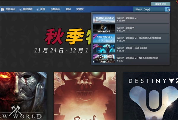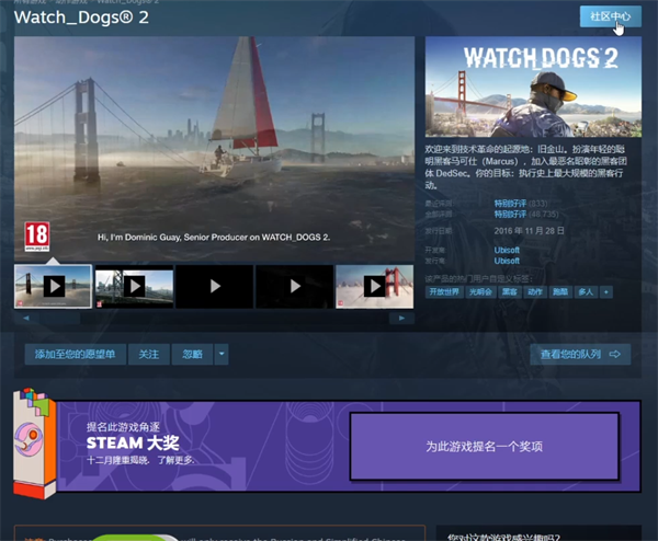 1.steam是较为常用的游戏游玩平台,以steam为例展示如何购买下载看 门狗。在steam中点击软件上方的商店页面,并在搜索栏搜索Watch_Dogs游戏名。