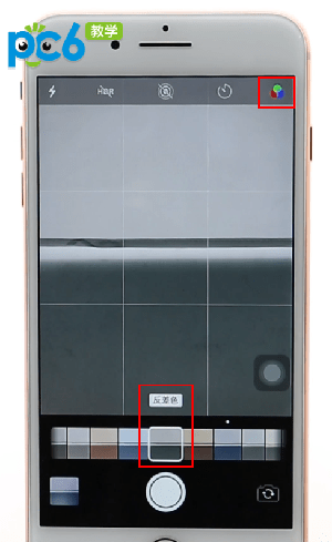 3、在屏幕右上方点击滤镜图标(三个圆圈组合),找到“反差色”滤镜;