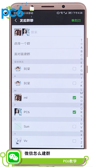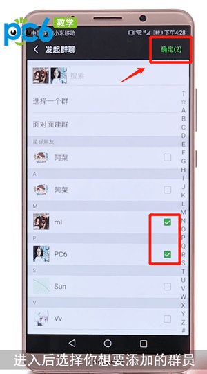 进入后选择你想要添加的群员,点击【确定】即可建群。