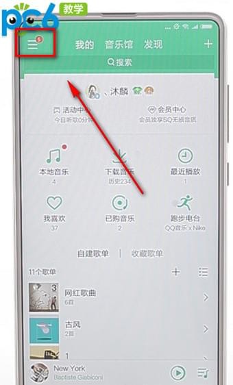 1.首先打开QQ音乐,点击左上方的菜单功能按键,