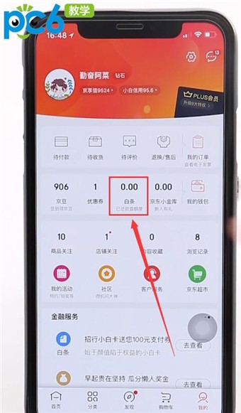 然后,点击“我的钱包”栏目中的【白条】