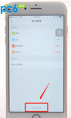 找到【账号管理】,最下方【常见问题】点击进入;
