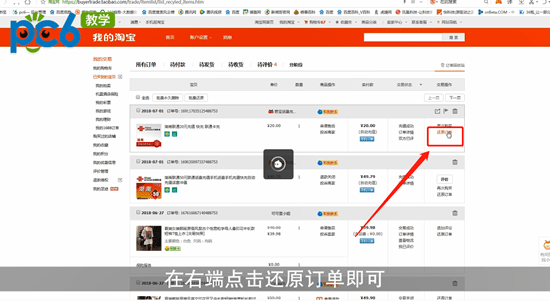 步骤四:选择需要的订单,在右端点击“还原订单”即可。